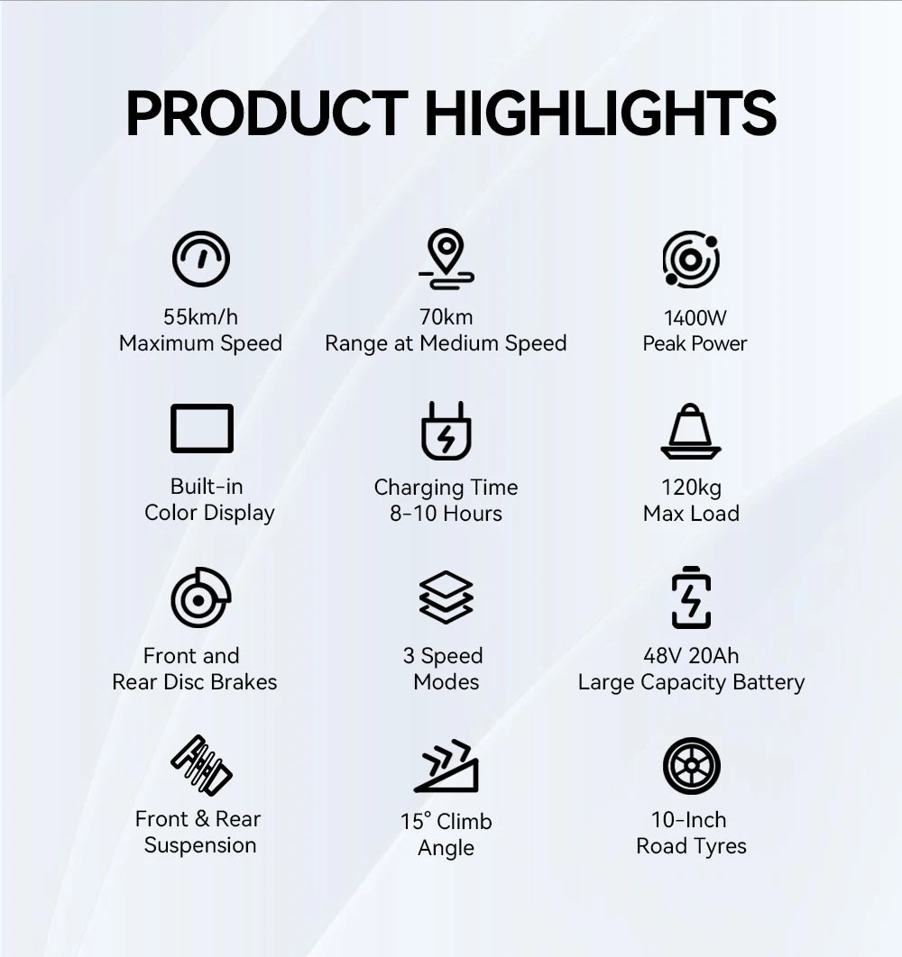 OOTD S10 E-Scooter 1400W Brand Motor 48V20AH Battery City Off-Road Electric Scooter Adult 10-inch Road Tires Foldable EScooters