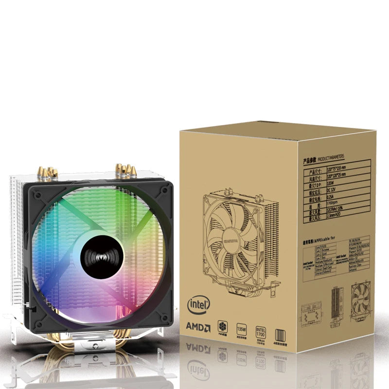 TEUCER CPU Cooler 4 Heat Pipes PC Radiator Cooling 3PIN PWM Silent Rgb Fan For Intel 1700 1150 1155 1156 1366 AM2/AM3/AM4 AMD